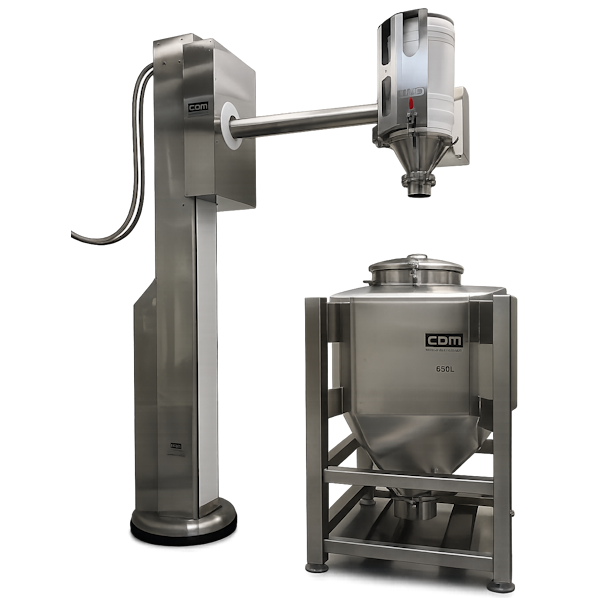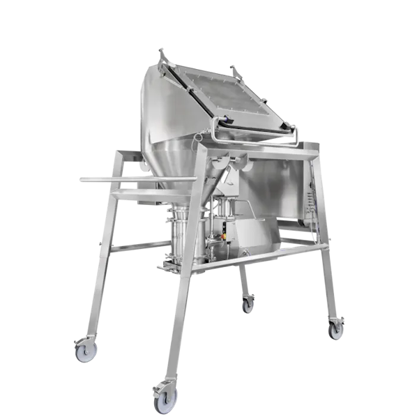 V, bin, double cone, etc. blenders, post lifts, drum tippers and material handling equipment for pharmaceutical facilities.